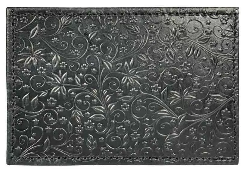 Обложка для проездного билета из натуральной кожи, черный, сплошное тиснение по коже "Флаверс"