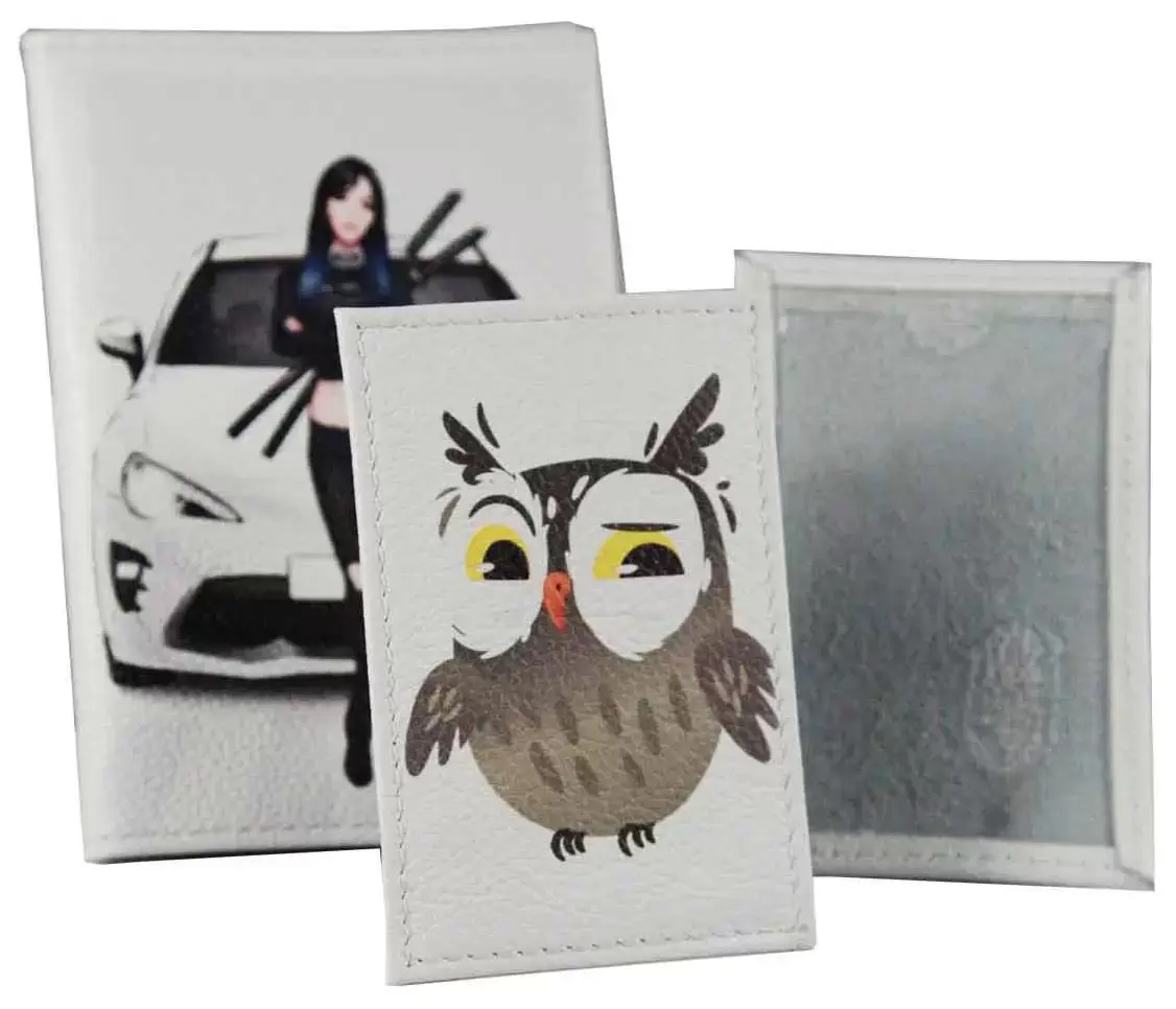 Обложка для проездного билета из натуральной кожи, цветной рисунок по коже "Совунья"