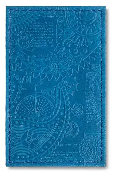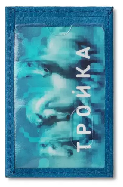 Обложка для проездного билета из натуральной кожи, голубой, сплошное тиснение по коже "Индийский орнамент"