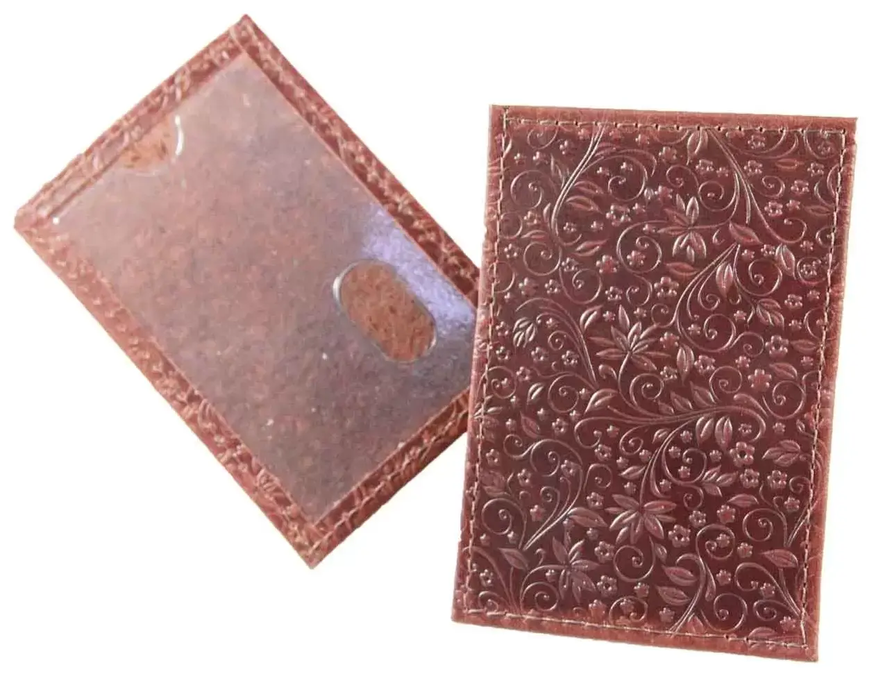 Обложка для проездного билета из натуральной кожи, коричневый, сплошное тиснение по коже "Флаверс"