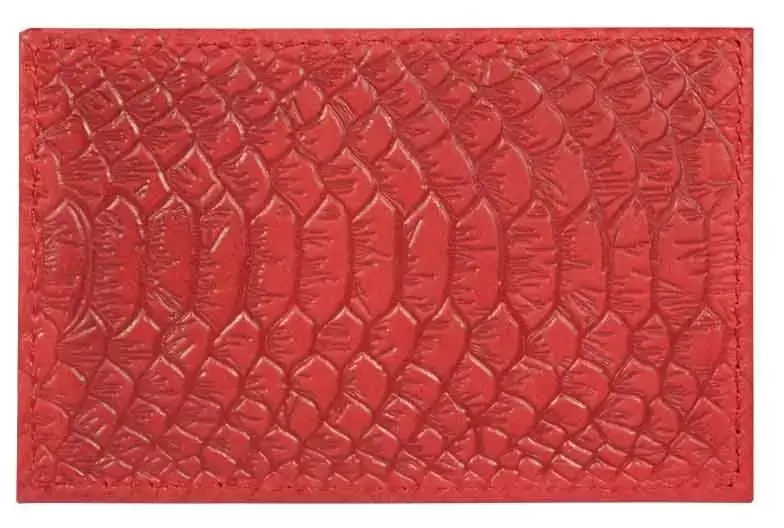 Обложка для проездного билета из натуральной кожи, красный, сплошное тиснение по коже "Питон"