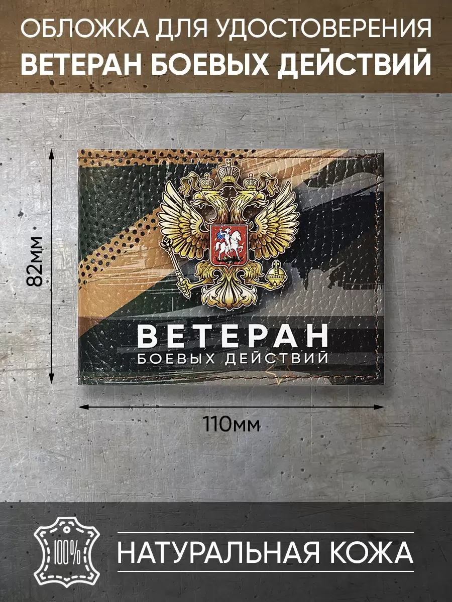 Обложка для удостоверения из натуральной кожи, с цветной рисунок по коже "Ветеран боевых действий"