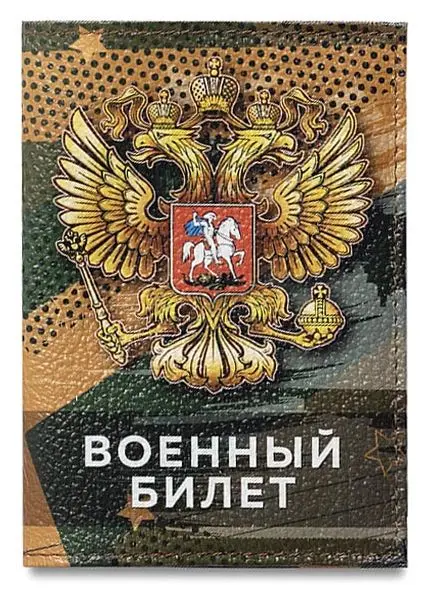 Обложка для военного билета из натуральной кожи, с цветной рисунок по коже "ГЕРБ"