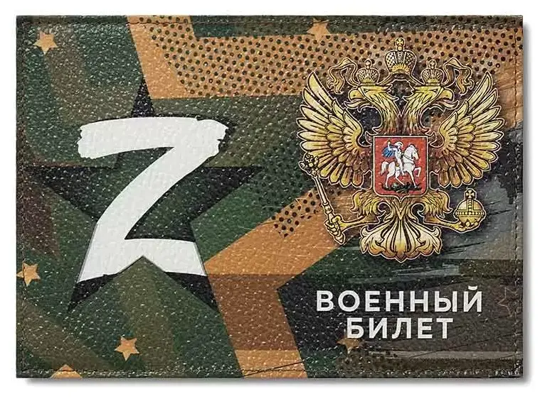 Обложка для военного билета из натуральной кожи, с цветной рисунок по коже "Z"