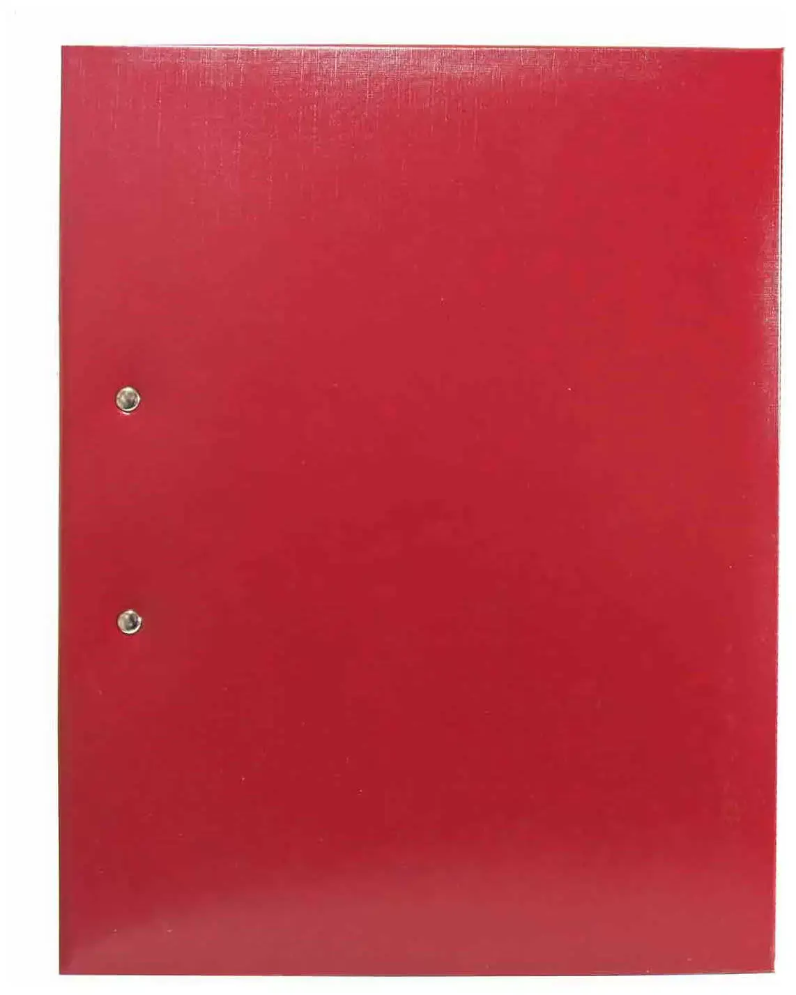 Папка адресная формата А4 (пухлая) с металлическим прижимным механизмом для бережного хранения документов без перфорации. Изготовлена из бордового бумвинила с жестким корешком 20 мм. Внутри папка выклеена белой офсетной бумагой.