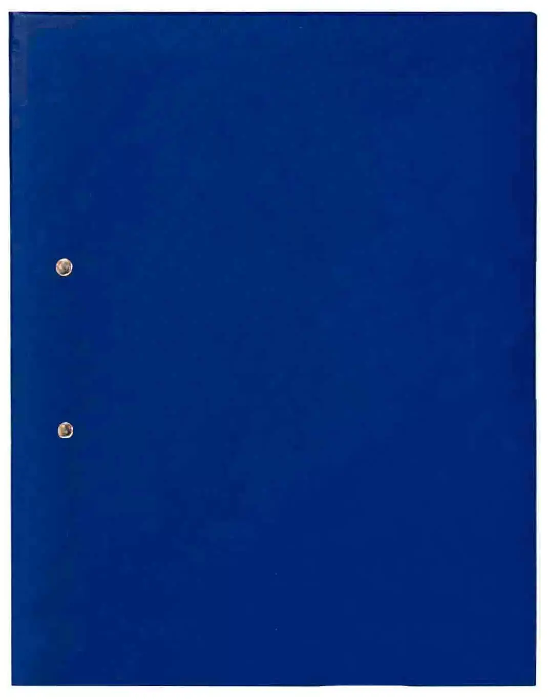 Папка адресная формата А4 (пухлая) с металлическим прижимным механизмом для бережного хранения документов без перфорации. Изготовлена из синего бумвинила с жестким корешком 20 мм. Внутри папка выклеена белой офсетной бумагой.