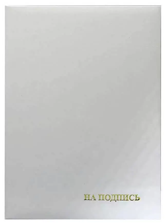 Адресная папка мягкая формата А4 изготовлена из бумвинила белого цвета. Внутренние вклейки — белая офсетная бумага. На обложку методом тиснения золотой фольгой нанесена надпись. Адресная папка подходит для поздравлений, хранения документов, а также подачи их на подпись.