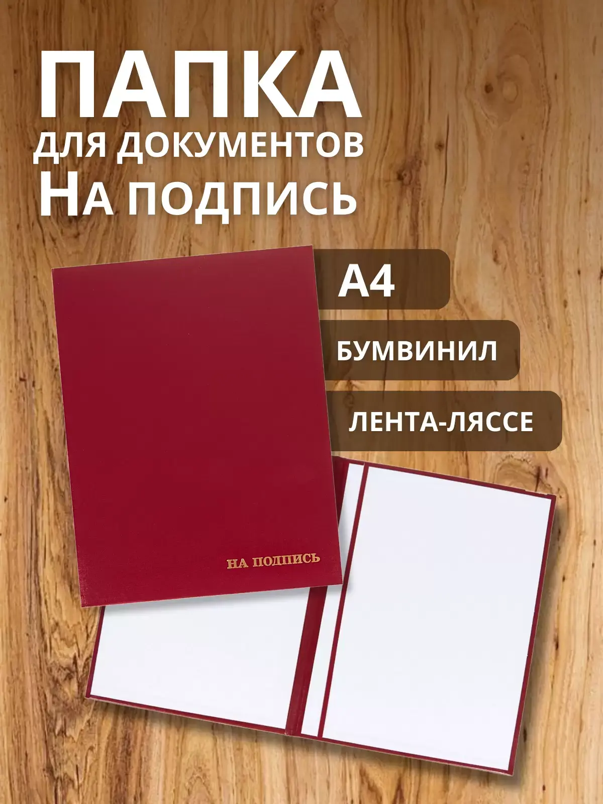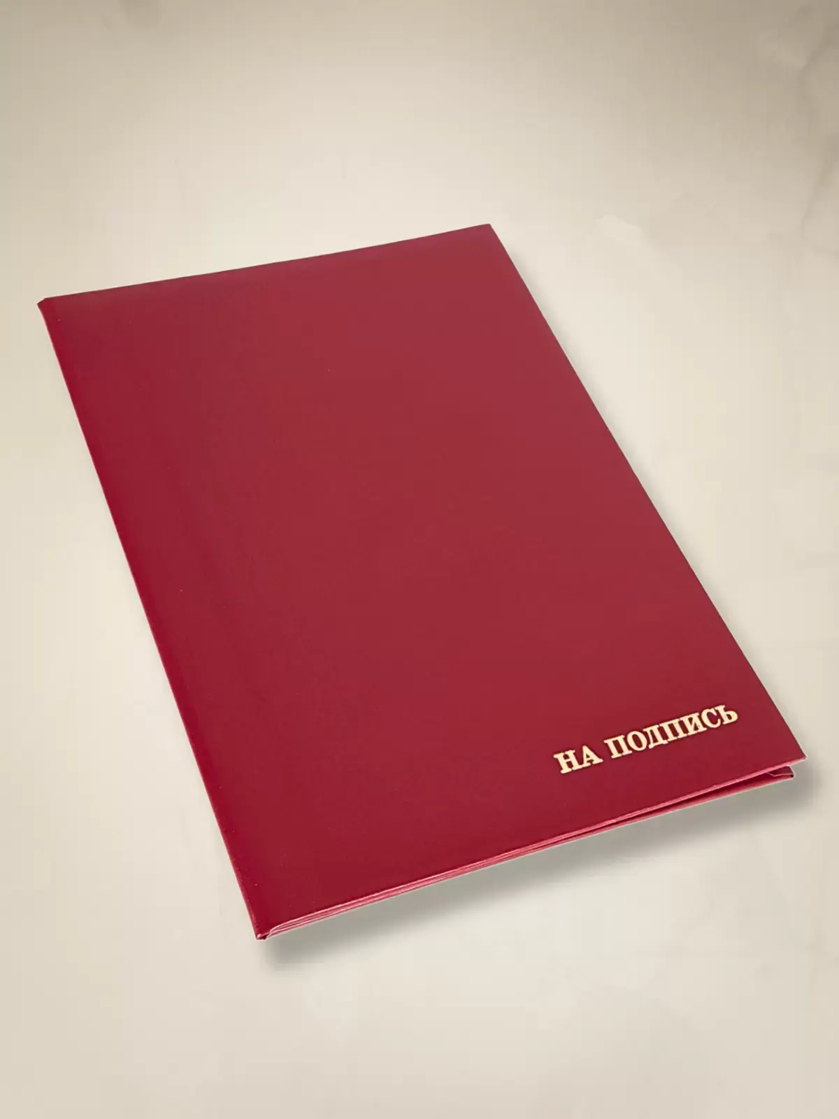 Папка адресная бумвинил А4 (пухлая) "На подпись" бордовая с ляссе