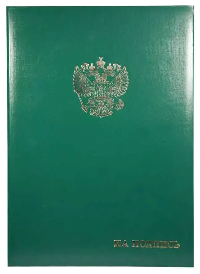 Папка адресная бумвинил А4 (пухлая) "На подпись + Герб" зеленая, с ляссе