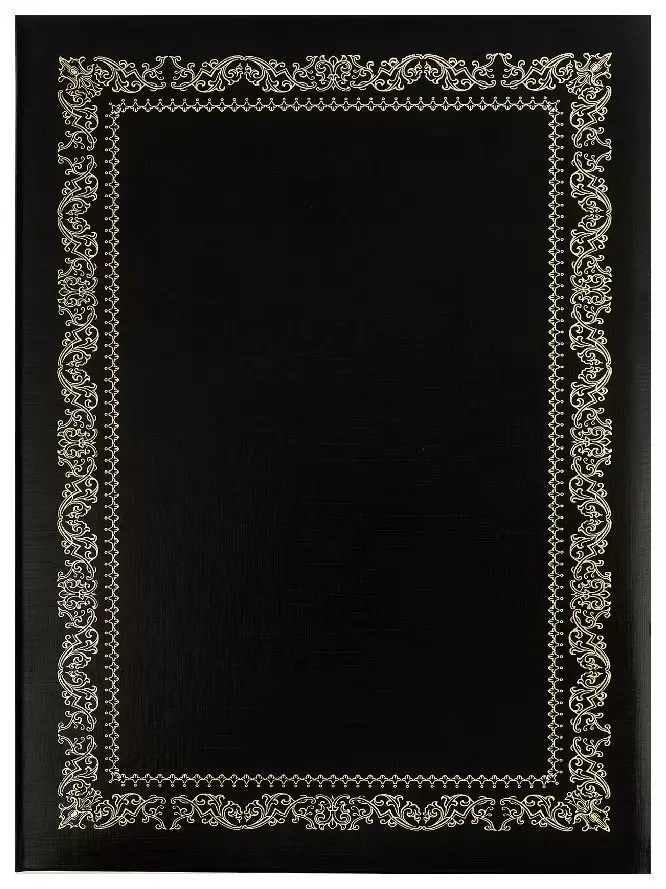 Адресная папка мягкая формата А4 изготовлена из бумвинила черного цвета. Внутренние вклейки — белая офсетная бумага. На обложку методом тиснения золотой фольгой нанесена рамка. Адресная папка подходит для поздравлений, хранения документов, а также подачиих на подпись.
