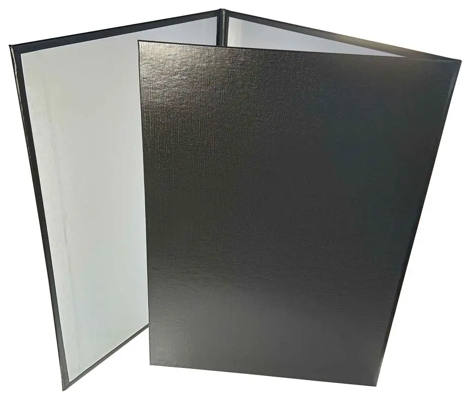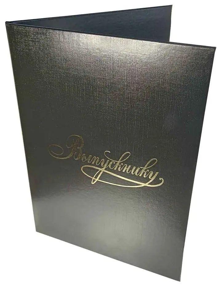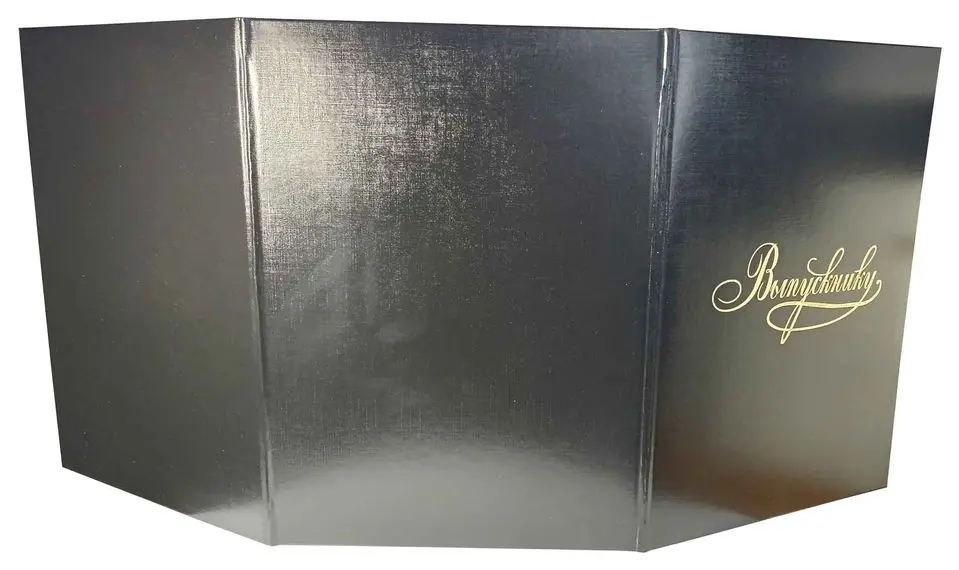 Адресная папка мягкая формата А4 изготовлена из бумвинила черного цвета. Внутренние вклейки — белая офсетная бумага. Трехсекционные. На обложку методом тиснения золотой фольгой нанесена надпись. Адресная папка подходит для поздравлений, хранения документов, а также подачи их на подпись.