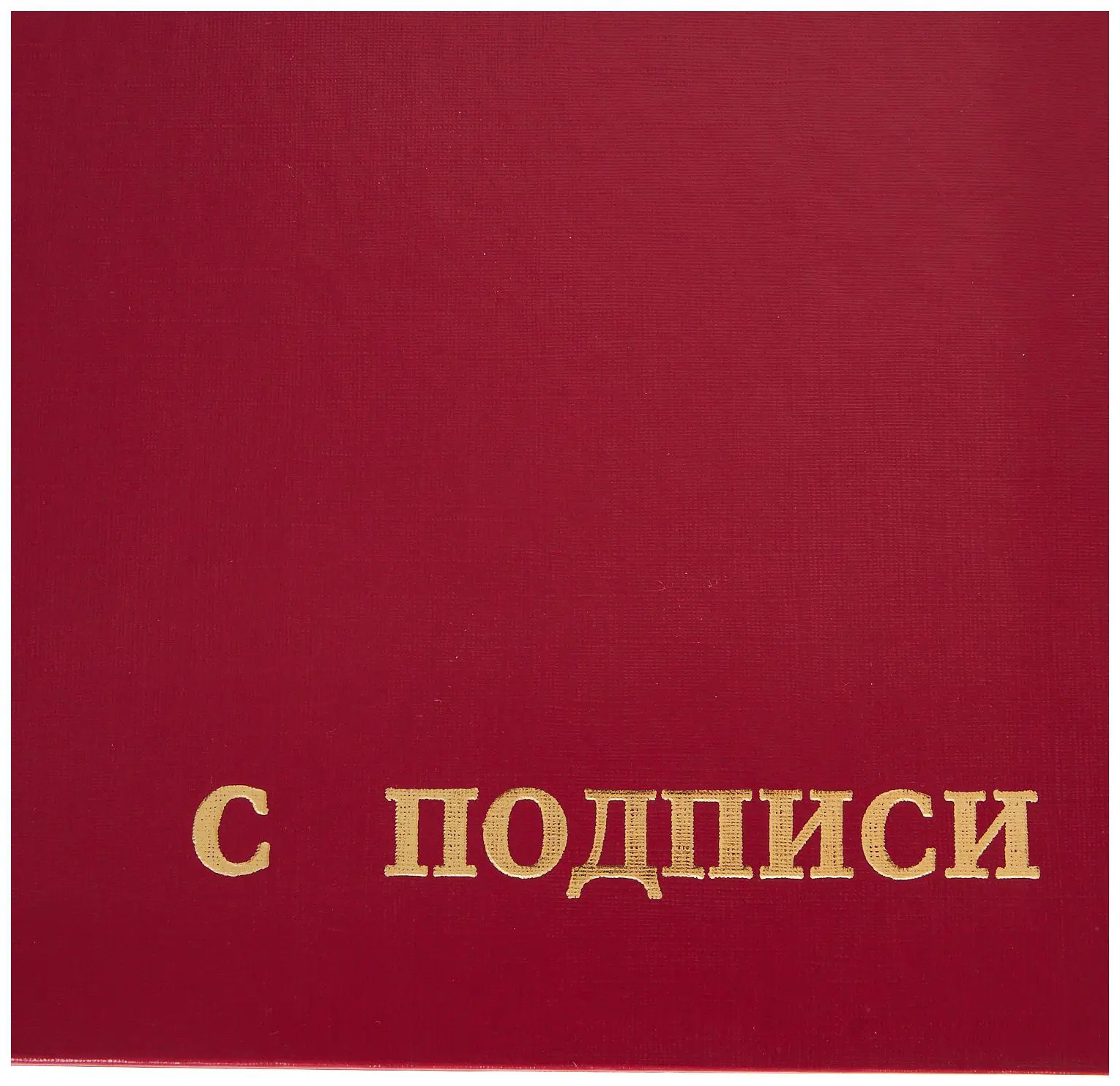 Адресная папка жесткая формата А4 изготовлена из бумвинила бордового цвета. Внутренние вклейки — белая офсетная бумага. На обложку методом тиснения золотой фольгой нанесена надпись. Адресная папка подходит для поздравлений, хранения документов, а также подачиих на подпись.