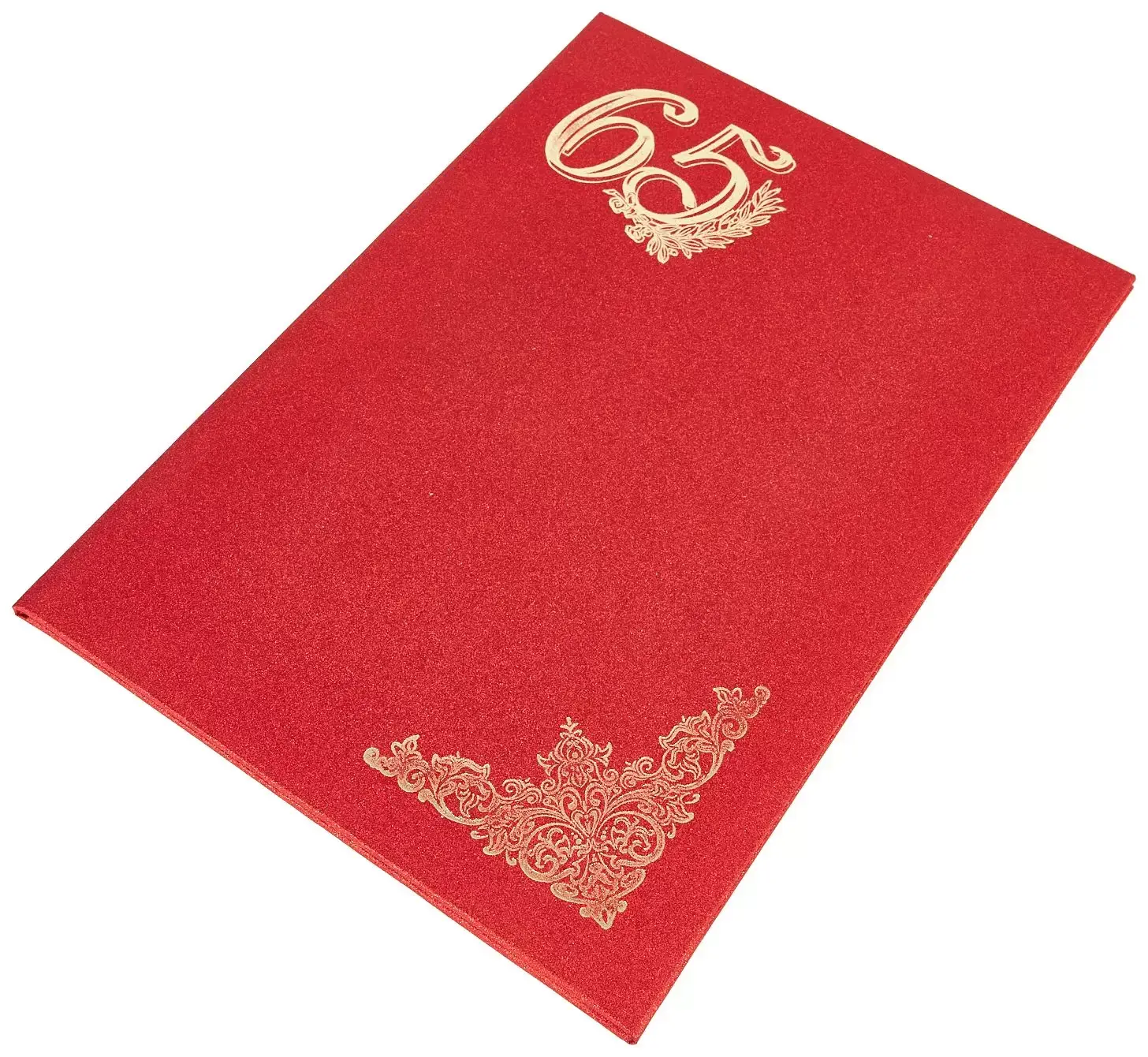 Папка адресная дизайнерские материалы А4 (пухлая) "65 лет" пыль красная