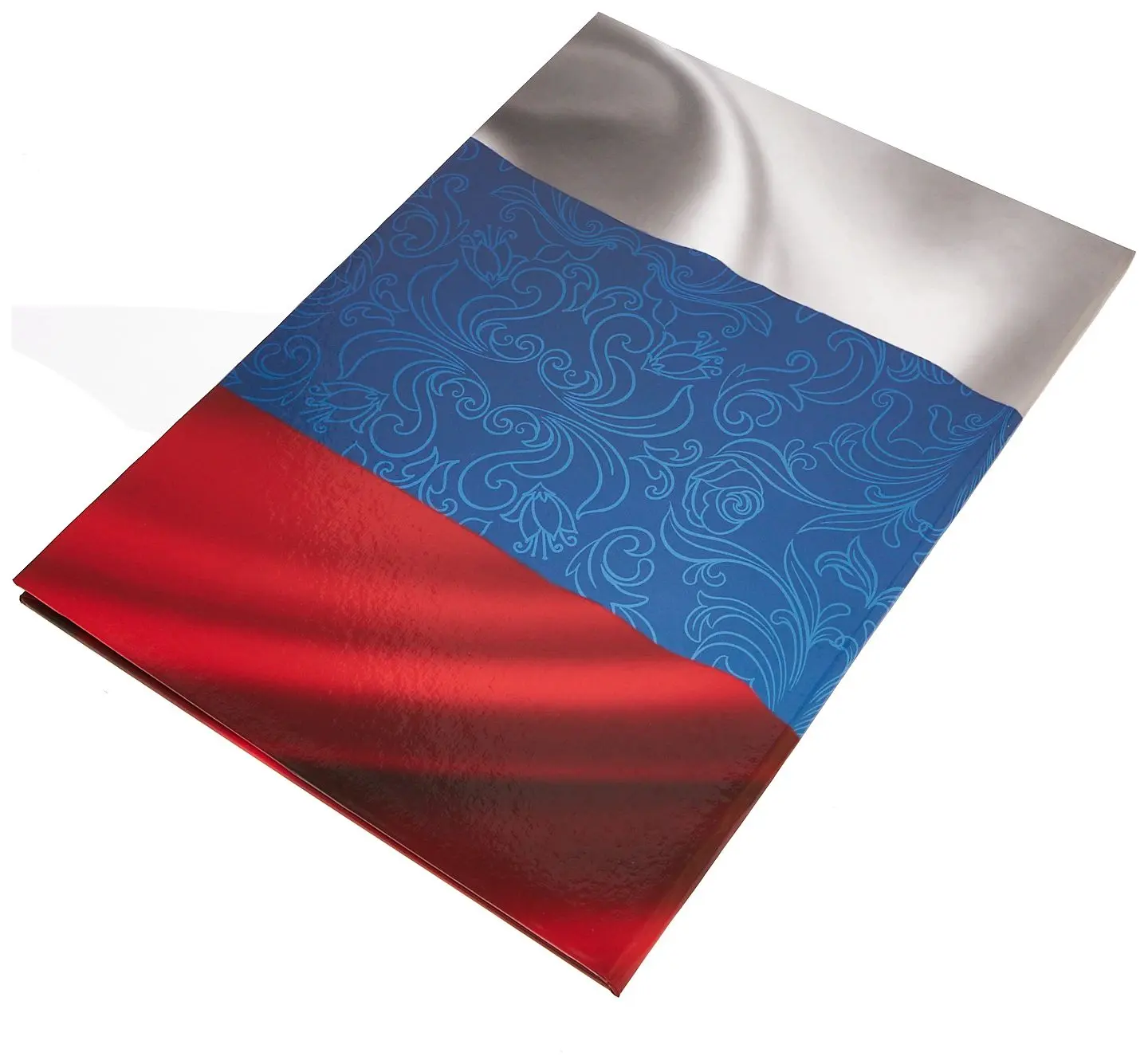 Внутренние вклейки — белая офсетная бумага. На обложку методом тиснения золотой