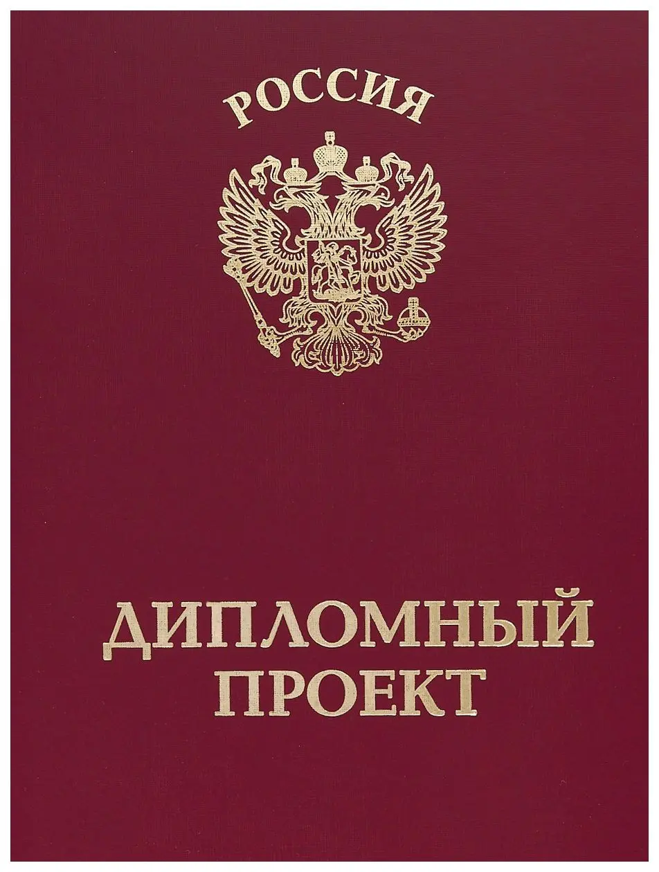 На лицевой стороне выполнено тиснение золотом "Орёл" и "Дипломный проект"