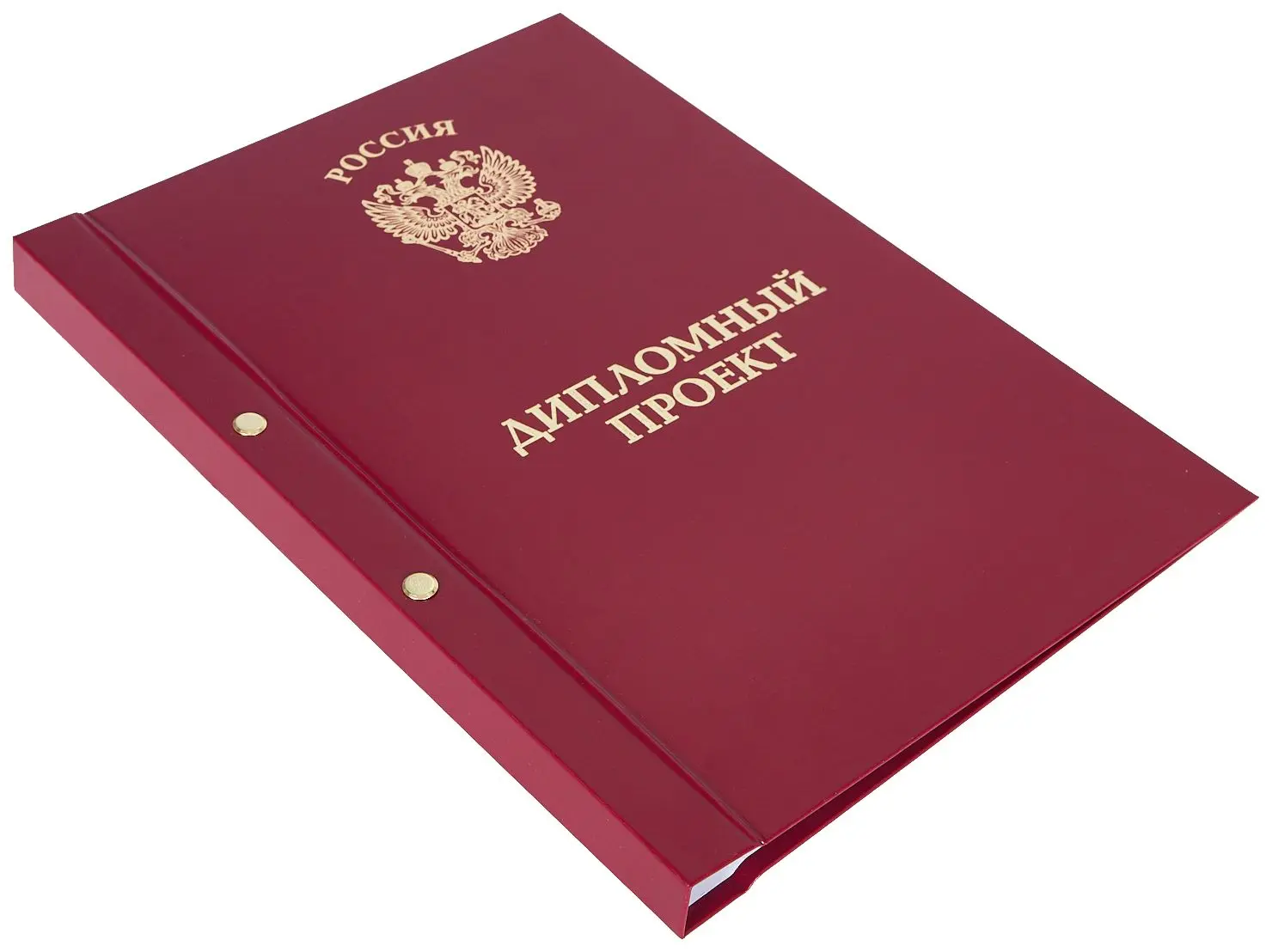 Папка-обложка для Дипломного проекта, бумвинил, корешок 20 мм жёсткий, бордовая, на 2-х болтах