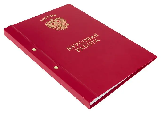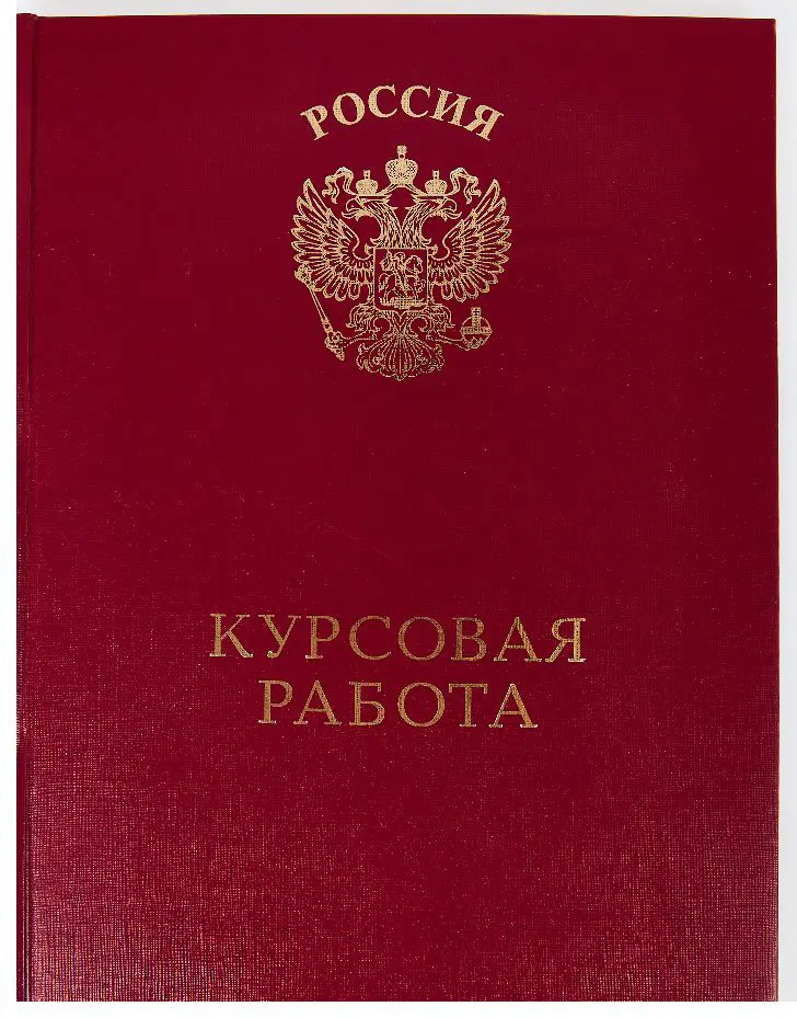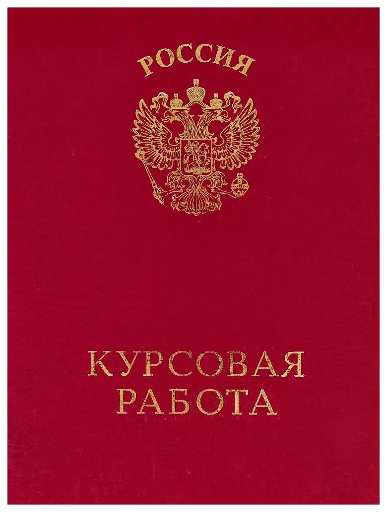 На лицевой стороне выполнено тиснение золотом "Орёл" и "Курсовая работа"