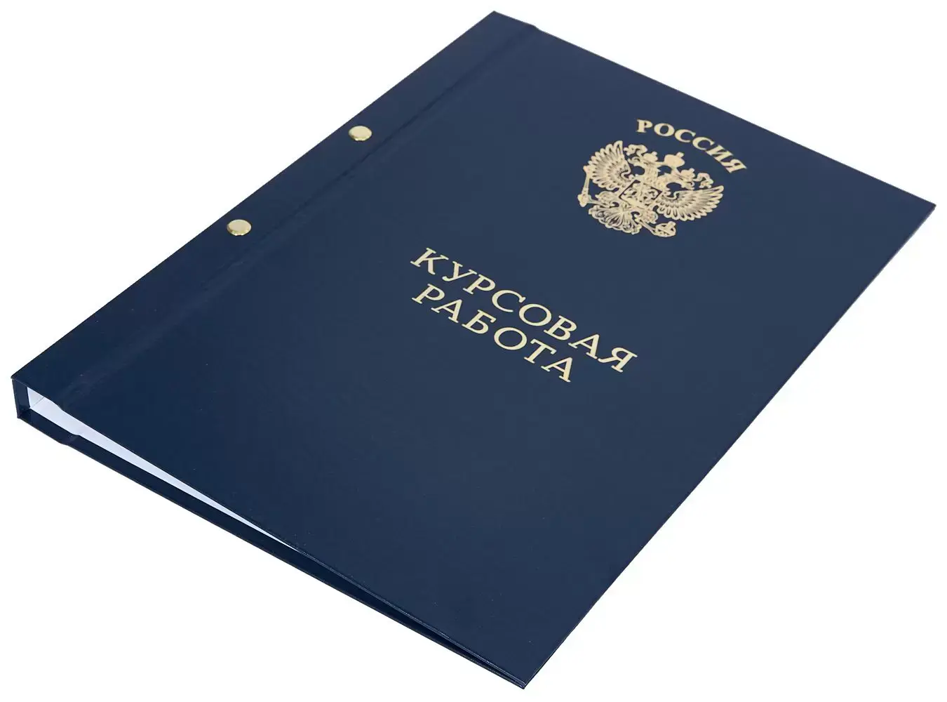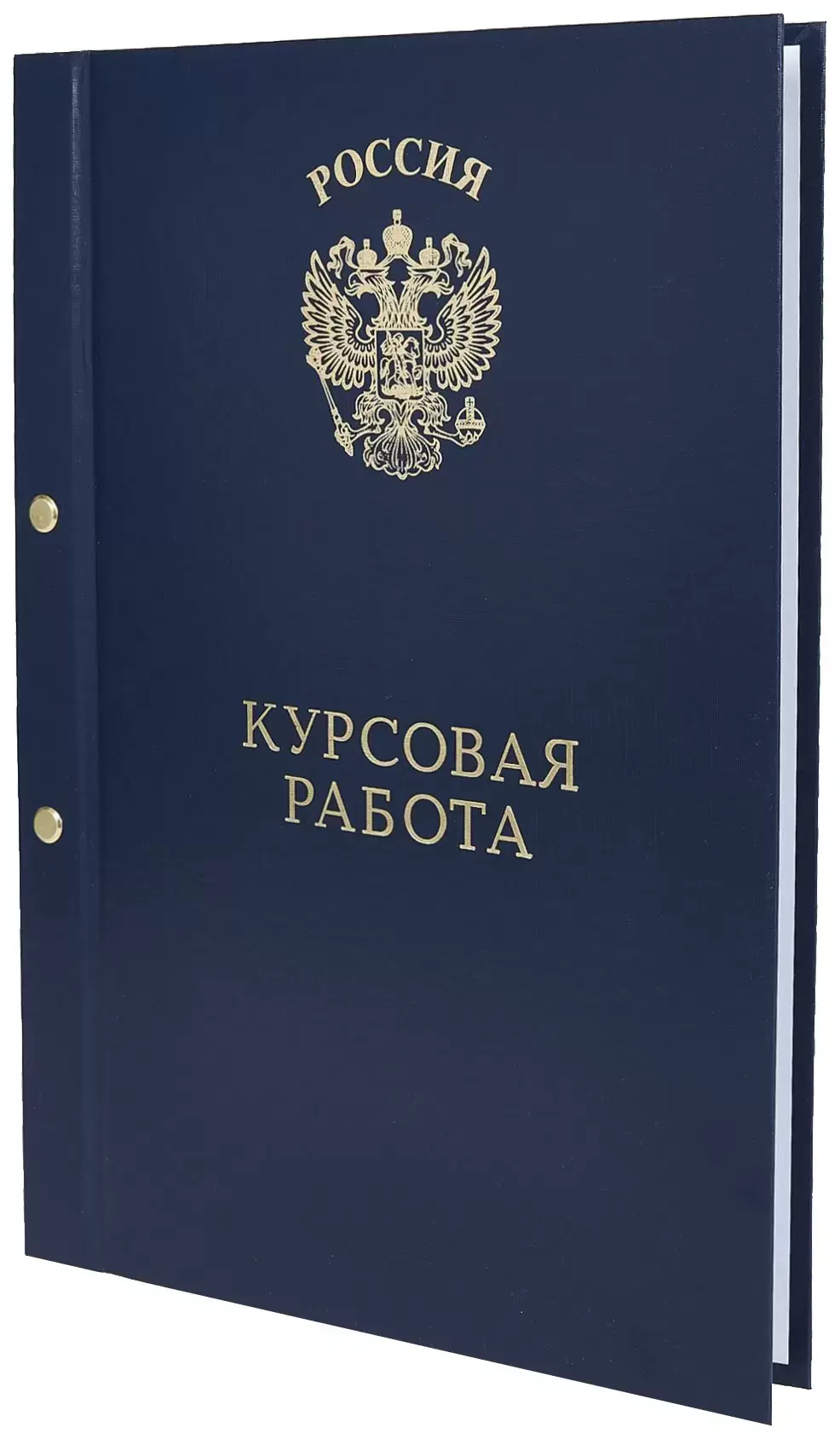 На лицевой стороне выполнено тиснение золотом "Орёл" и "Курсовая работа"