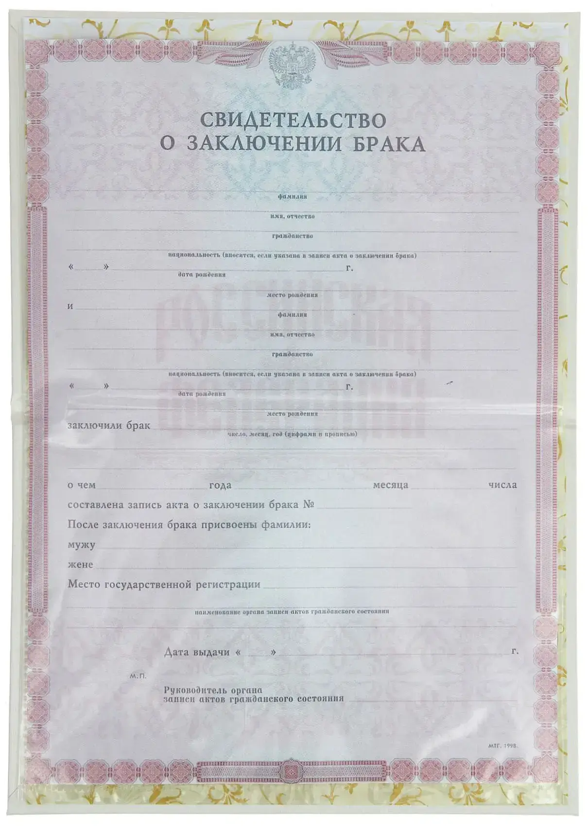 - Надпись (текст и рисунок): Свидетельство о заключении брака