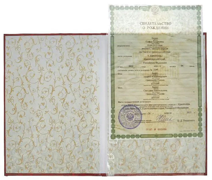 - Надпись (текст и рисунок): Свидетельство о рождении