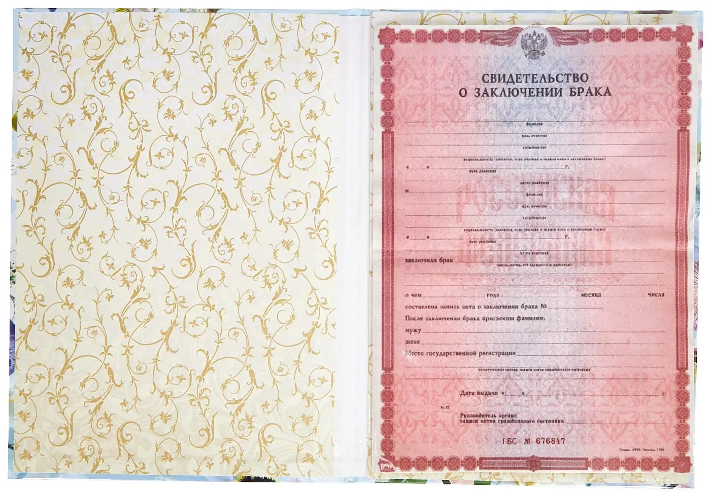 - Надпись (текст и рисунок): Свидетельство о заключении брака