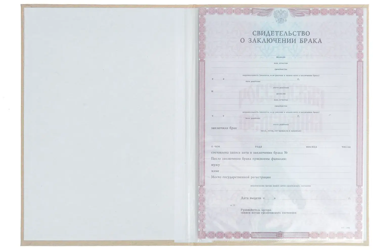 Папка с файлом ламинированная А4 (пухлая) "Свидетельство о заключении брака" Любовь