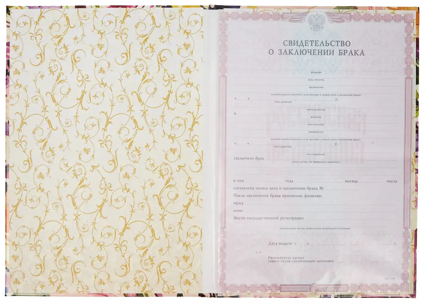 - Надпись (текст и рисунок): Свидетельство о заключении брака