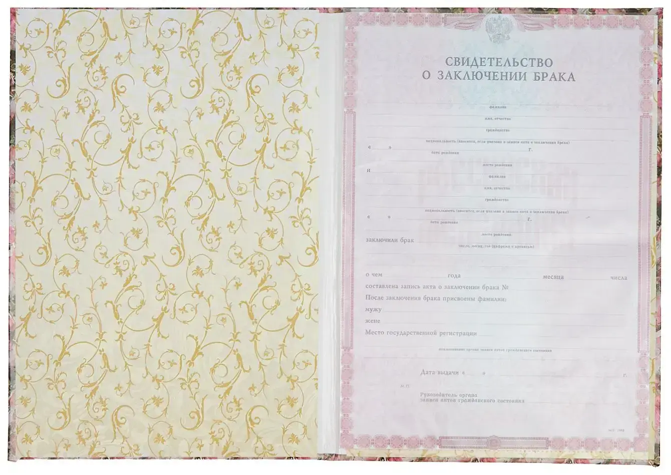 - Надпись (текст и рисунок): Свидетельство о заключении брака