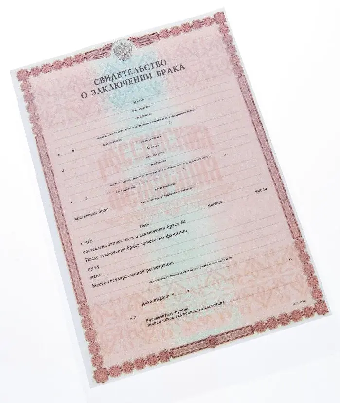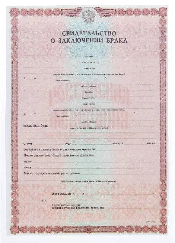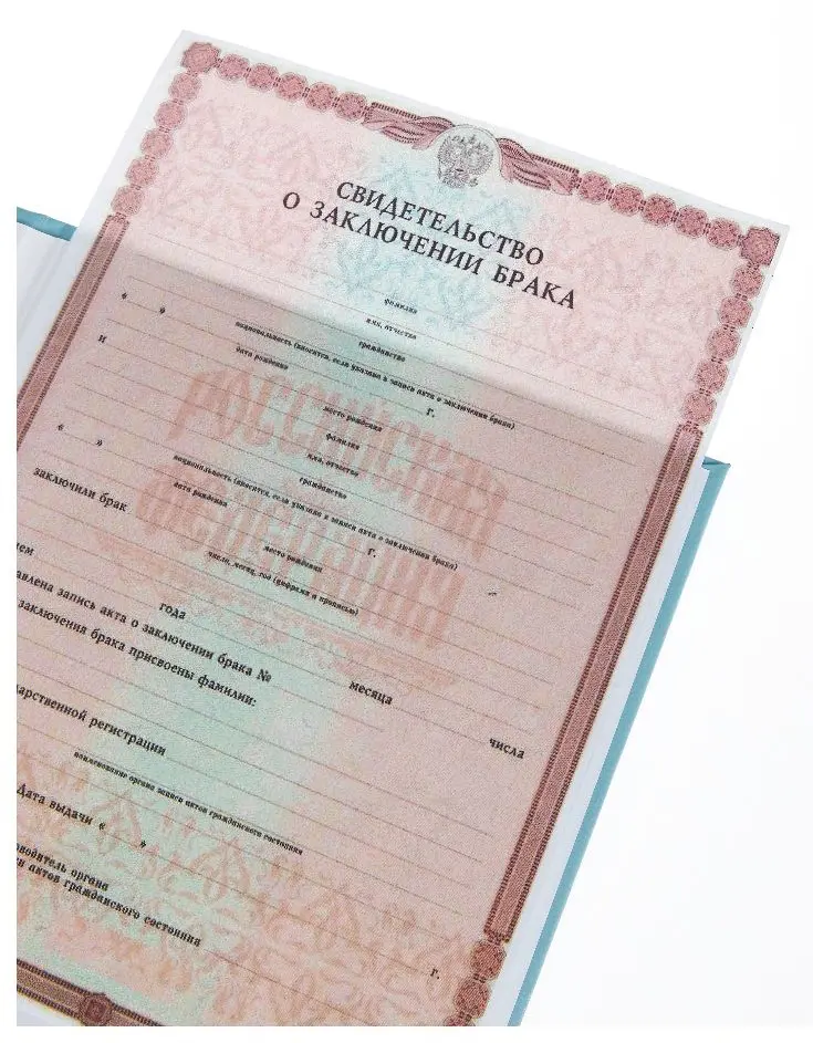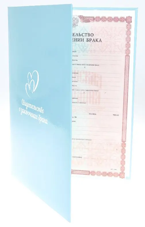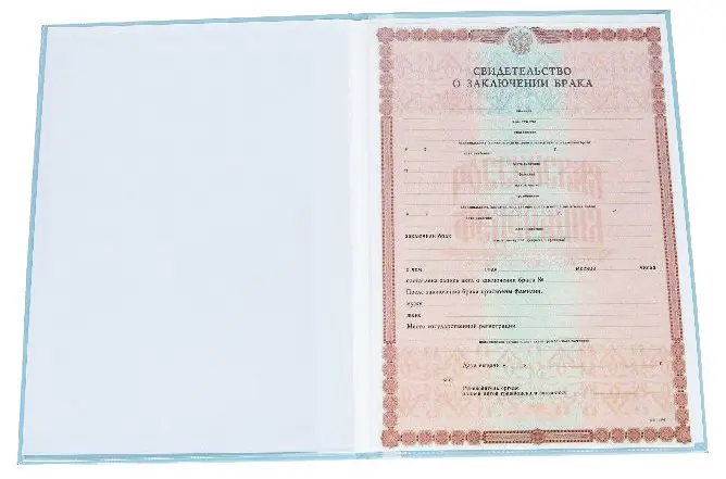 - Надпись (текст и рисунок): Свидетельство о заключении брака