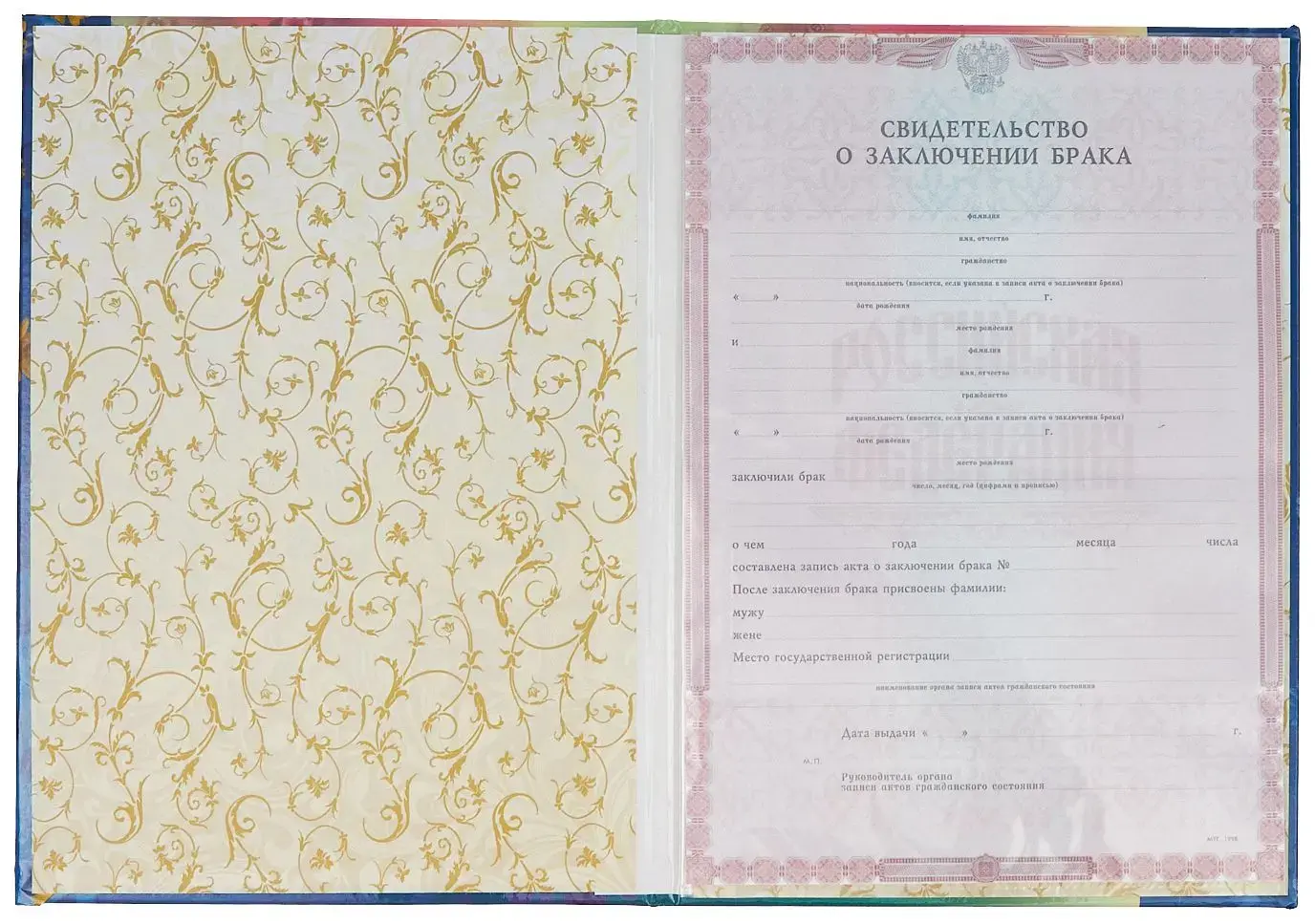- Надпись (текст и рисунок): Свидетельство о заключении брака
