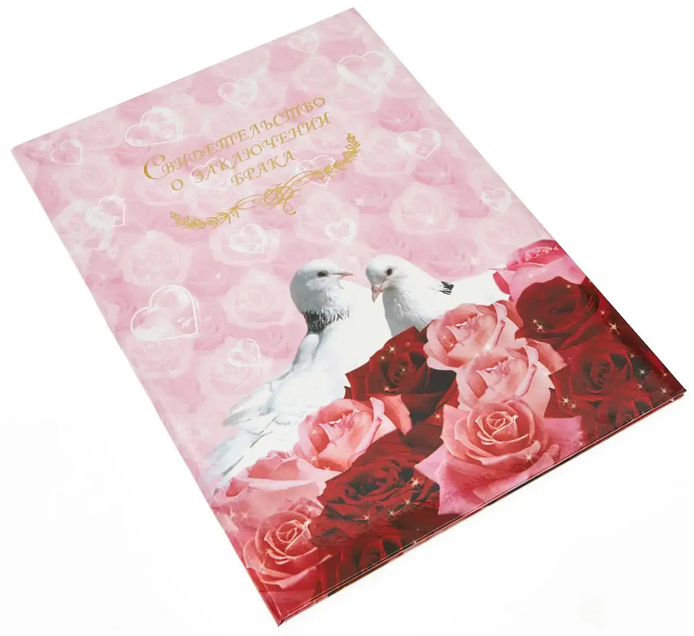 Папка с файлом ламинированная А4 (пухлая) "Свидетельство о заключении брака с виньеткой" Два белых голубя в цветах