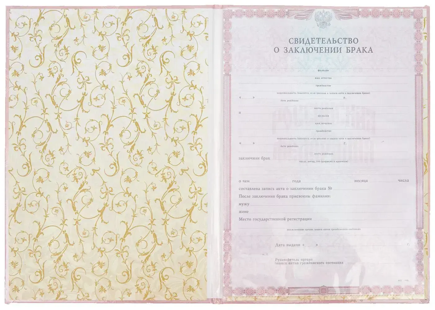 Папка с файлом ламинированная А4 (пухлая) "Свидетельство о заключении брака с виньеткой" Магнолия