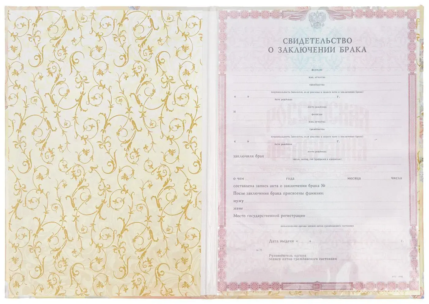 - Надпись (текст и рисунок): Свидетельство о заключении брака