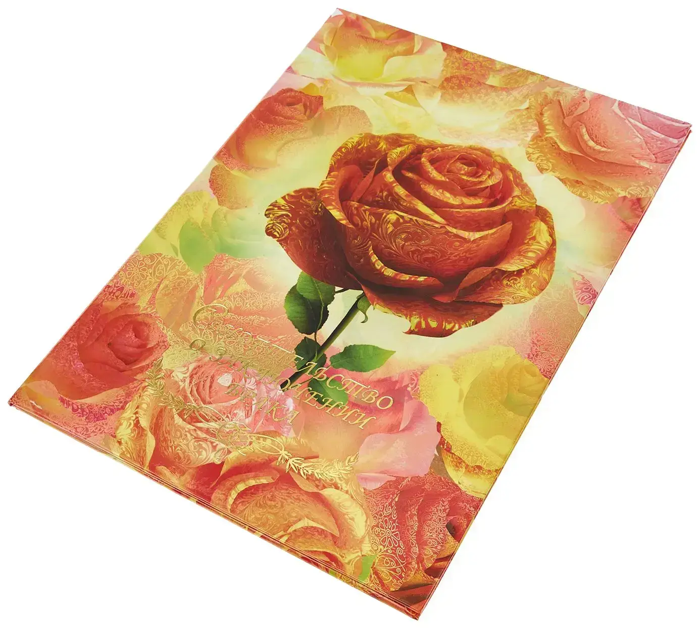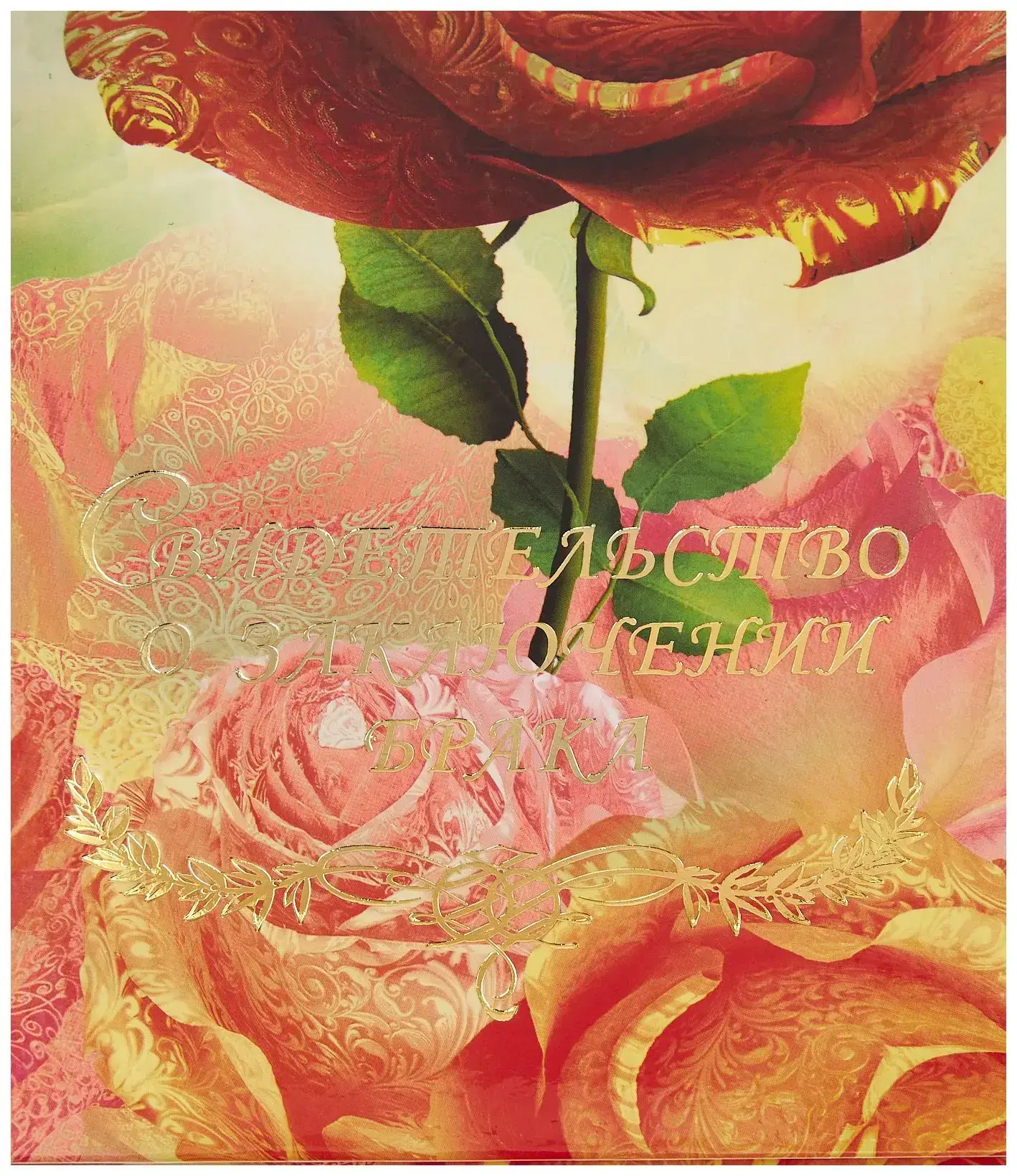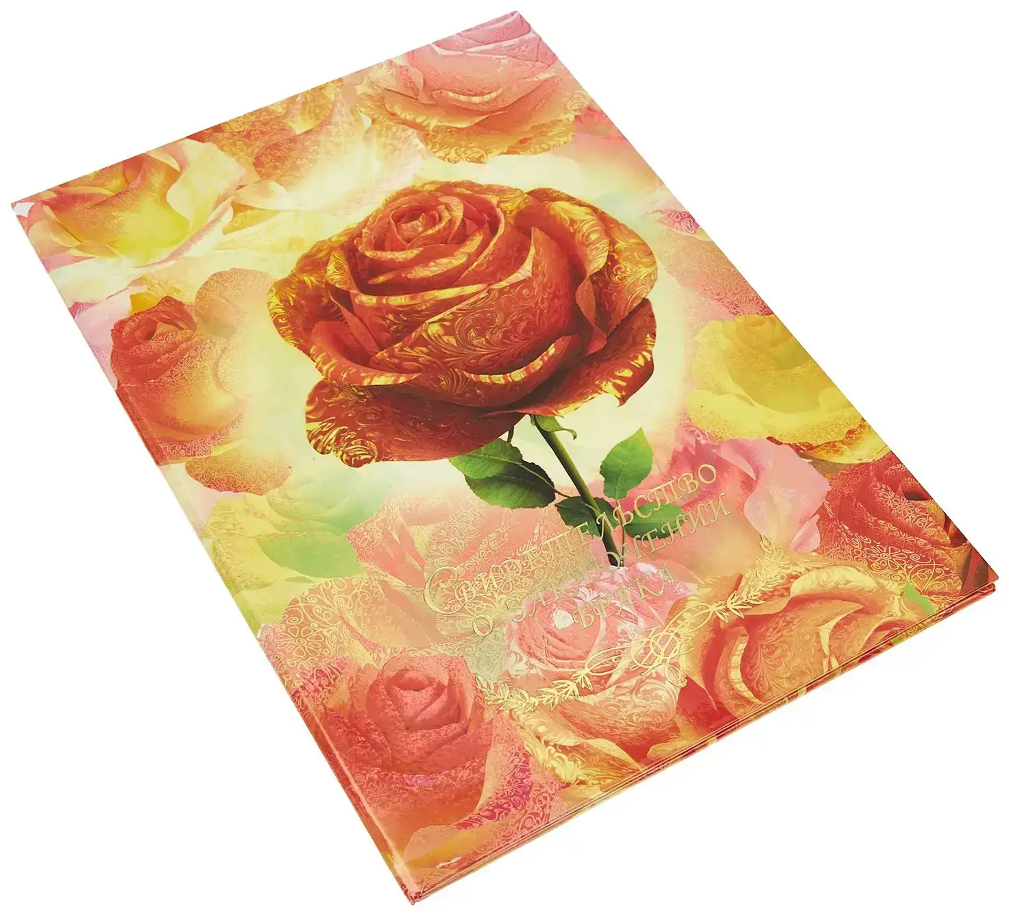 Папка с файлом ламинированная А4 (пухлая) "Свидетельство о заключении брака с виньеткой" Золотая роза
