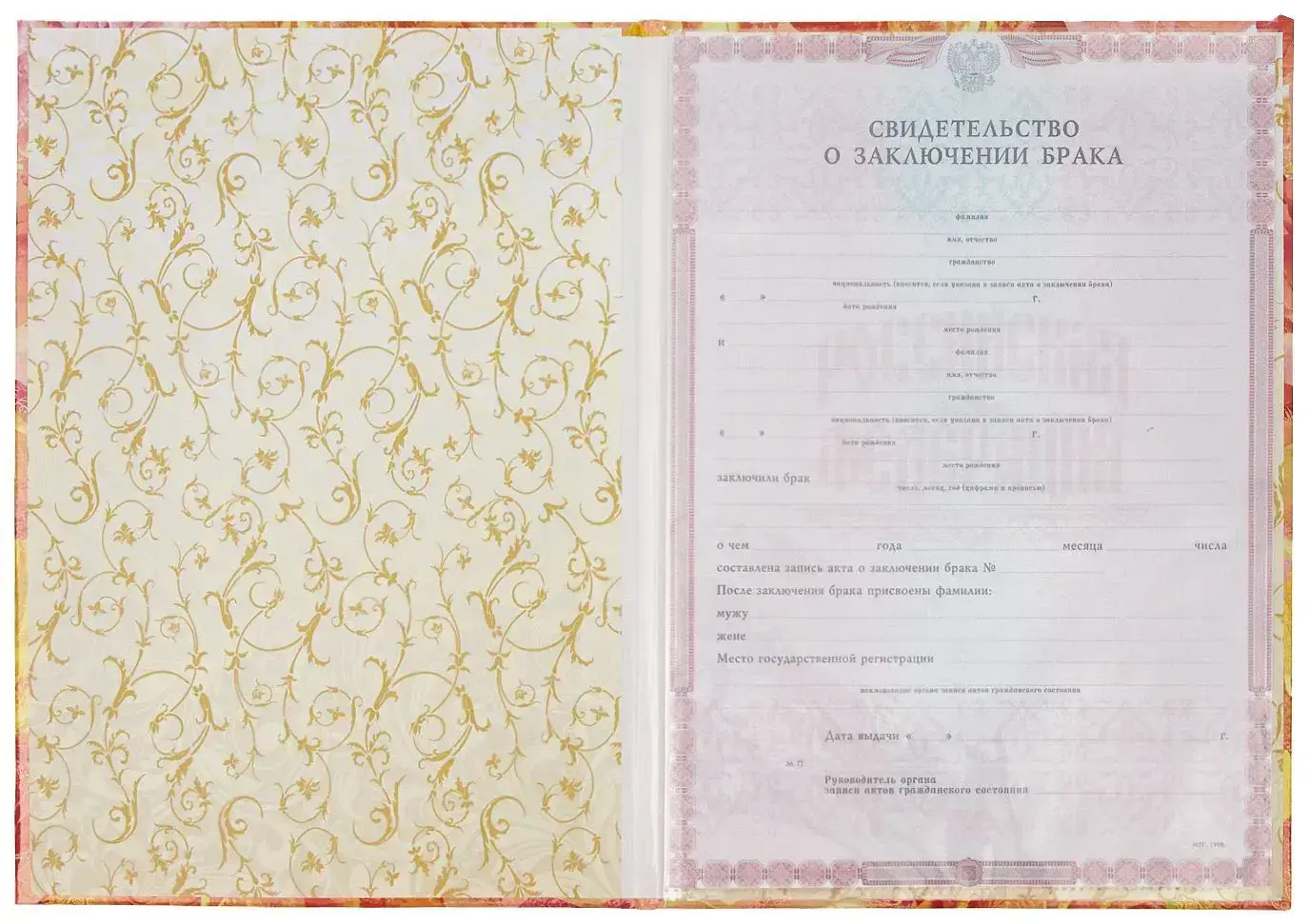 - Надпись (текст и рисунок): Свидетельство о заключении брака