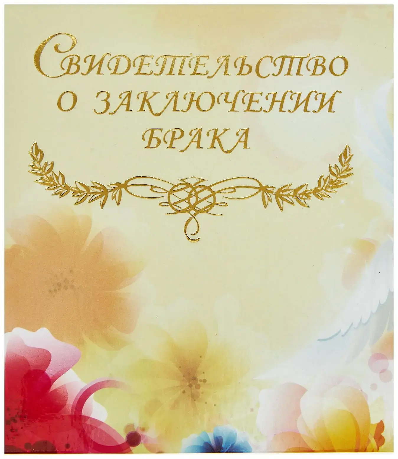 - Надпись (текст и рисунок): Свидетельство о заключении брака