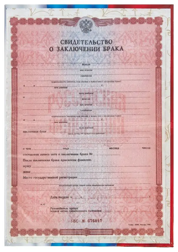 Папка с файлом ламинированная А5 (жесткая) "Свидетельство о заключении брака" С флагом (в.р)