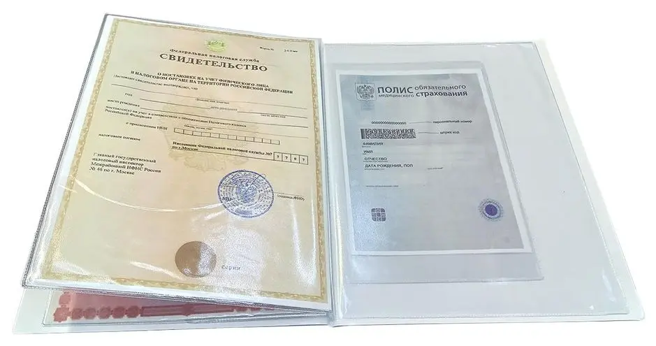 Папка "Семейные документы" ПВХ белый с картоном, печать (принт) "Малахит" с приваренным блоком (19 кармашков)