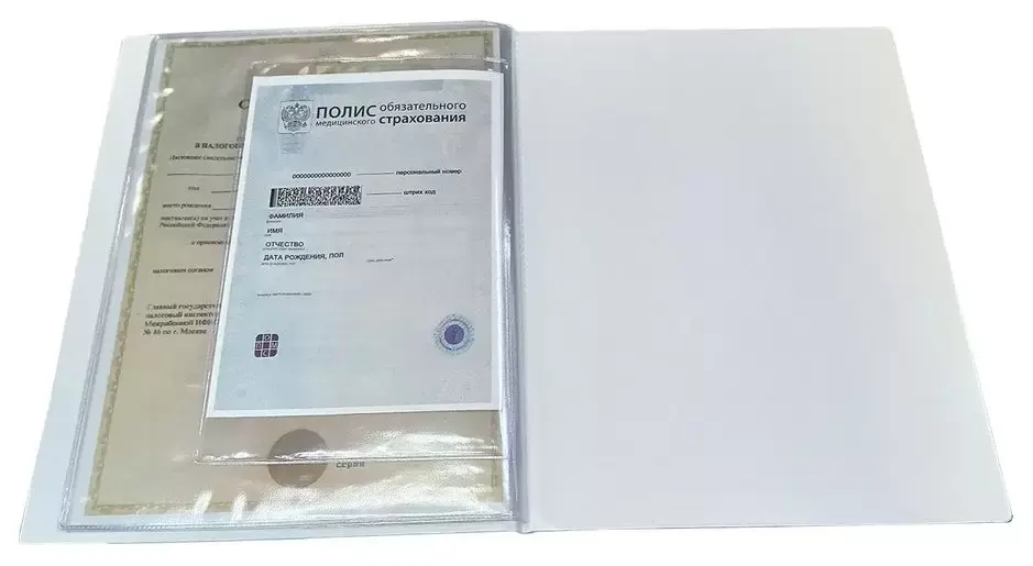 Папка "Семейные документы" ПВХ белый с картоном, печать (принт) "Виолетта" с приваренным блоком (19 кармашков)