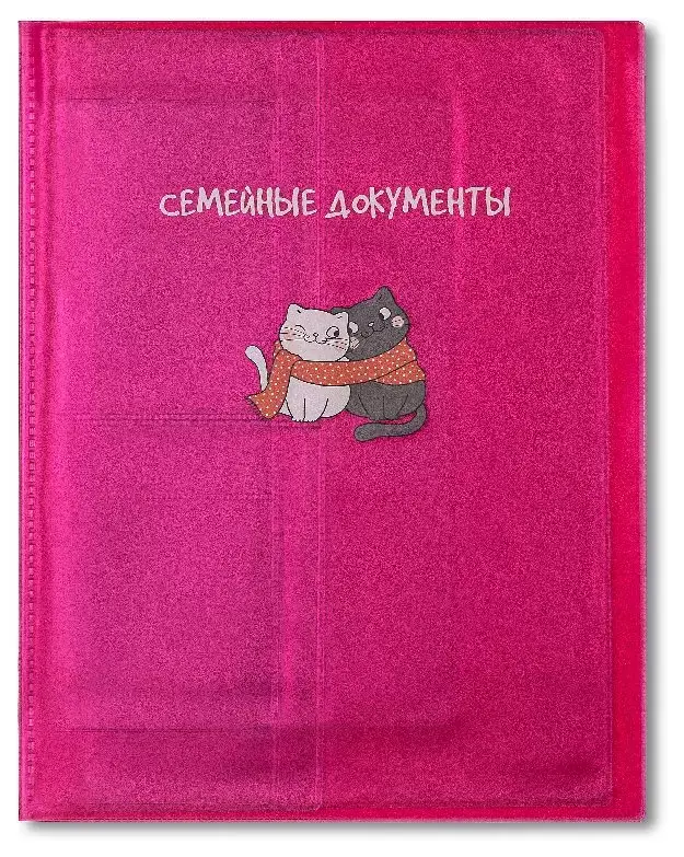 Папка "Семейные документы" ПВХ желе красное, печать (принт) "Котик" с приваренным блоком (19 кармашков)