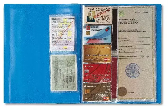 Папка "Семейные документы" ПВХ желе синее, с приваренным блоком (19 кармашков)