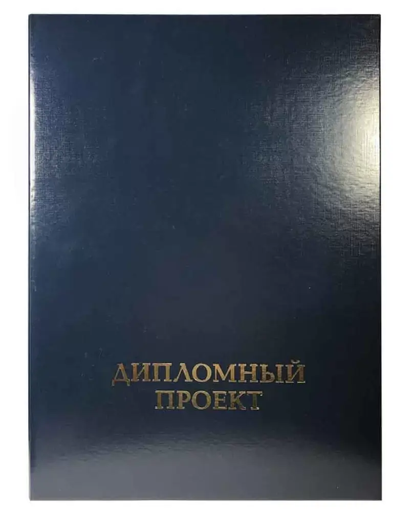 Папка жесткая "Дипломный проект" с П-образным гребешком, бумвинил, корешок 25 мм жёсткий, синяя, сутаж