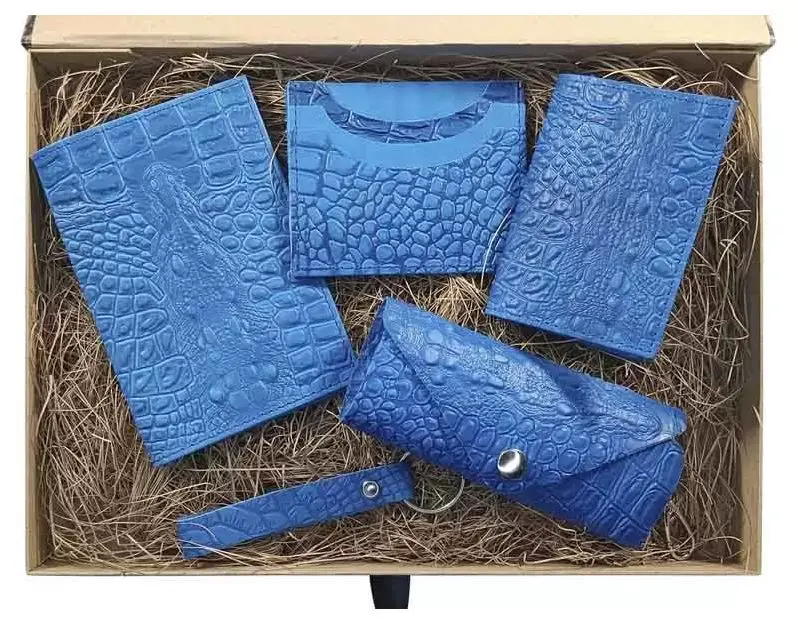 Подарочный набор "Бомонд" из натуральной кожи, голубой, тиснение "Данди"