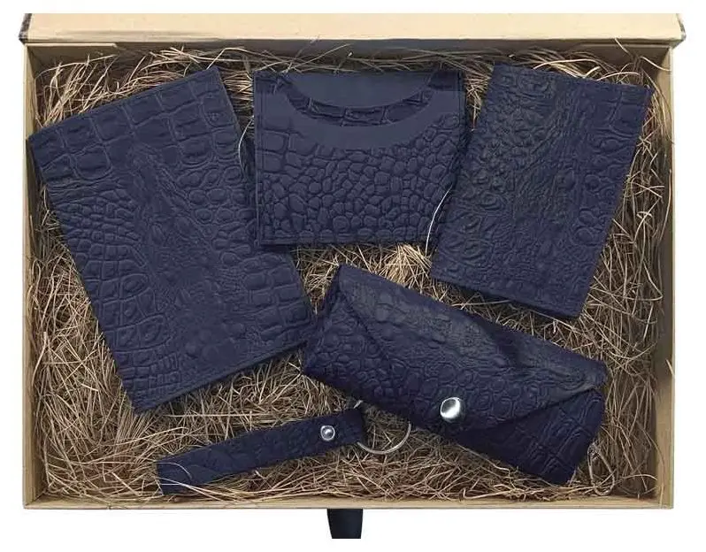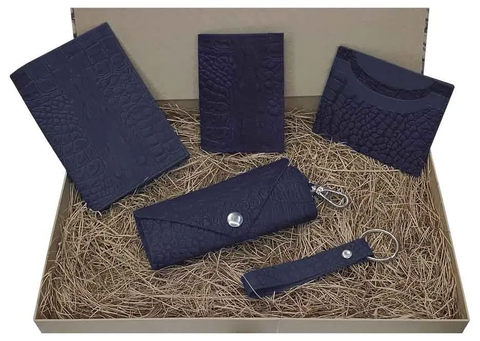 Подарочный набор "Бомонд" из натуральной кожи, синий, тиснение "Данди"