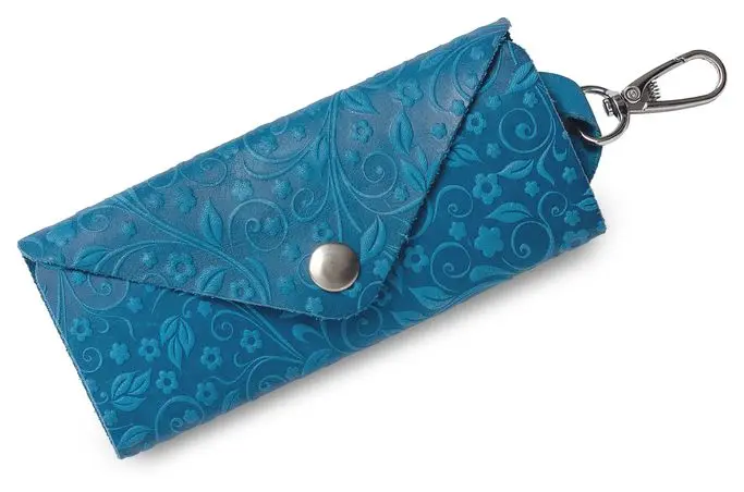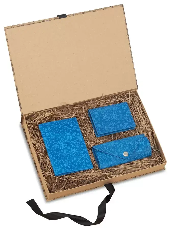 Подарочный набор "Классик" из натуральной кожи, голубой, тиснение "Флаверс"