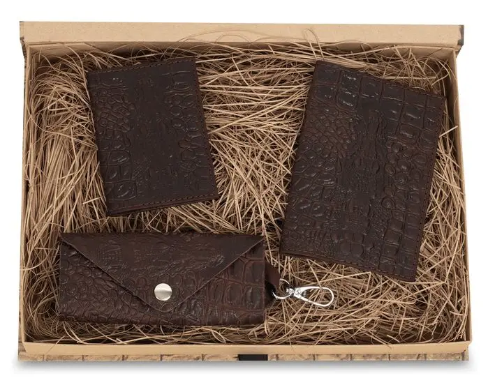 Подарочный набор "Классик" из натуральной кожи, коричневый, тиснение "Данди"