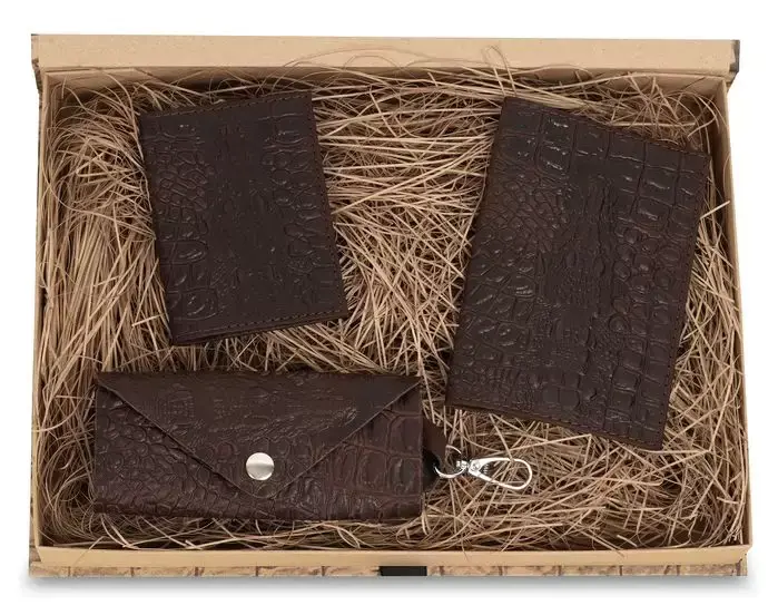 Подарочный набор аксессуаров из натуральной кожи.