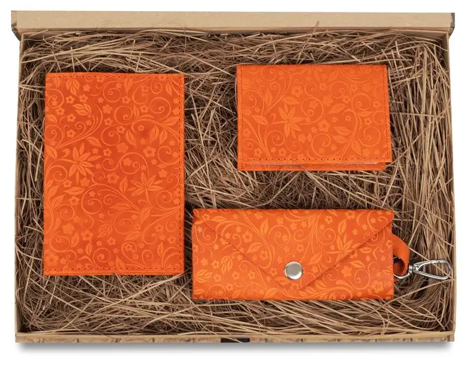 Подарочный набор "Классик" из натуральной кожи, рыжий, тиснение "Флаверс"