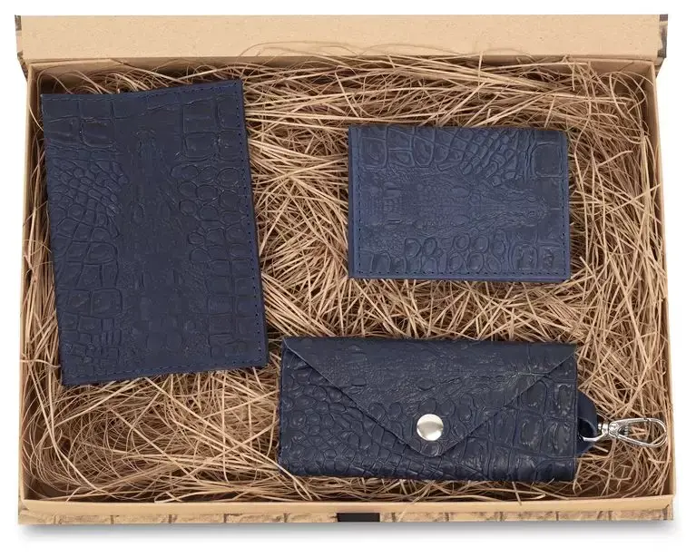 Подарочный набор "Классик" из натуральной кожи, синий, тиснение "Данди"