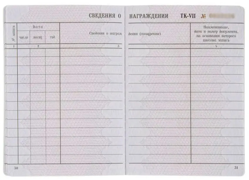 Вкладыш в трудовую книжку, действующего в настоящее время образца 2023 года